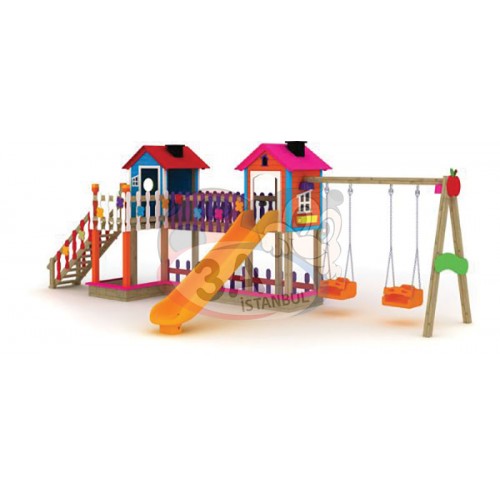 İki Kuleli Salıncaklı Aktivite Parkı Ahşap
