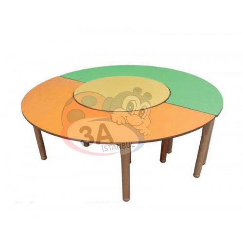 Masa plakası ve ayakları ayrı, ayrıdır. Ayaklar metaldir. Ölçüler: Çap 130 (Renkler..